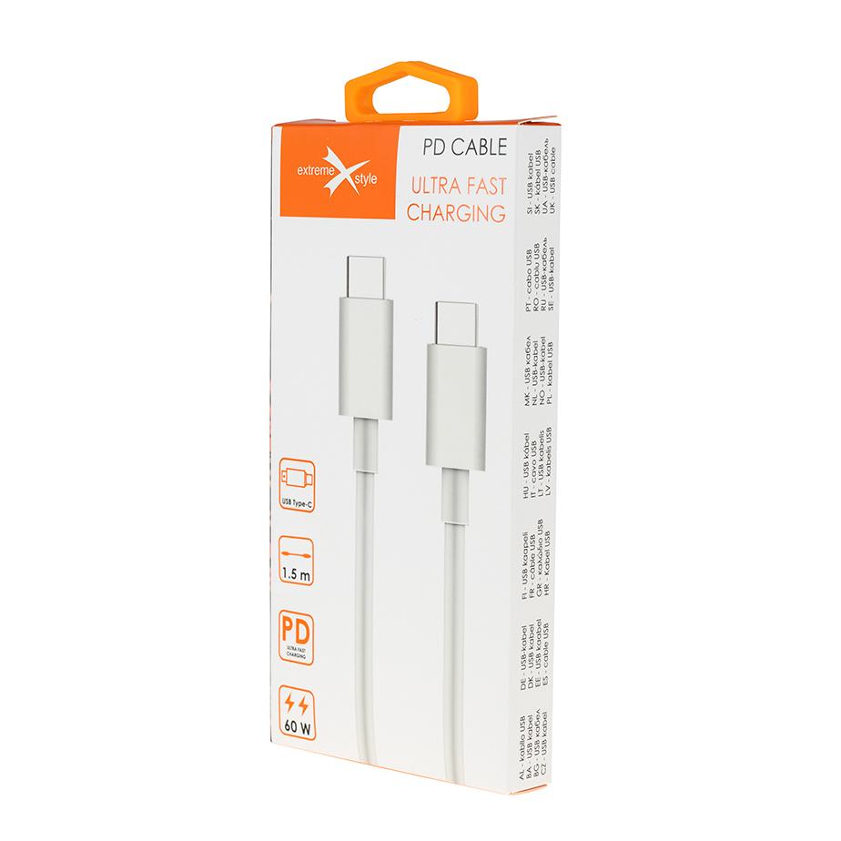 Kabel PD USB Typ-C marki eXtremestyle umożliwia szybki transfer danych (do 480 Mbps) pomiędzy urządzeniem a komputerem.