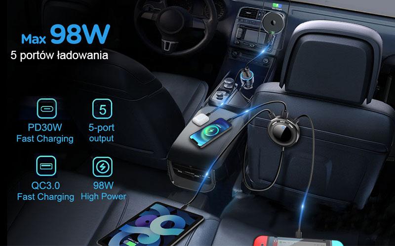 Thanks to 98W of power, the charger is also perfect for other devices such as tablets, GPS navigations, cameras, video recorders, etc.