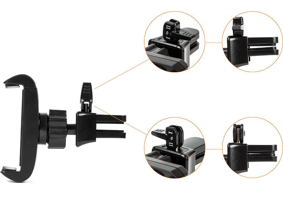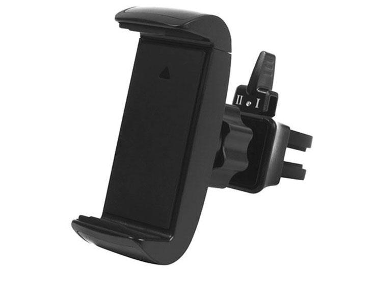 Universal holder for mobile phones fitted to the air vent is an option for drivers who do not want to limit visibility on the windshield.