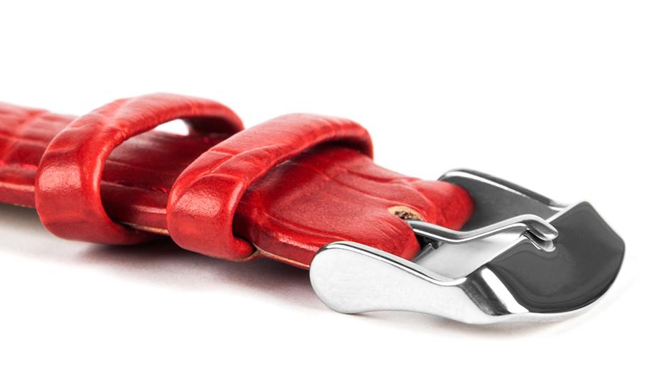 The high-quality, anti-allergic crocodile-grain leather strap is great for a variety of styles.