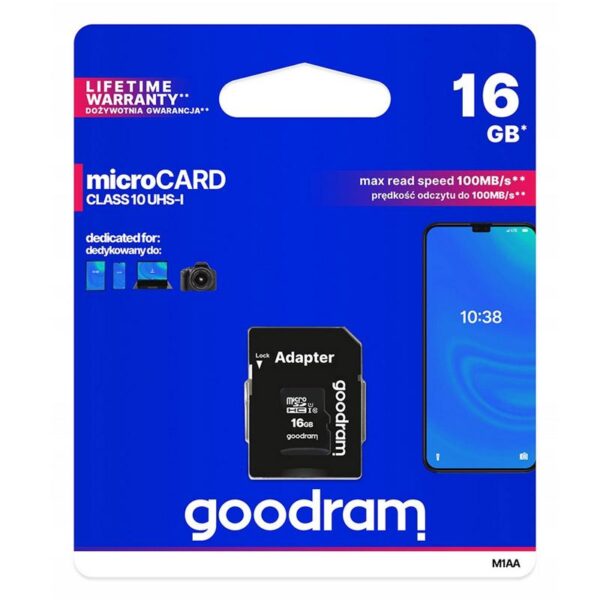 Memory card microSDHC 16GB + adapter SD class 10 – GOODRAM