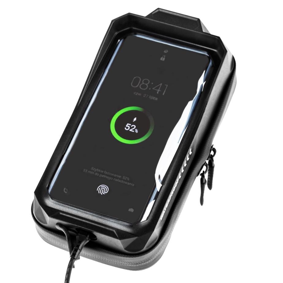 The double zipper ensures 100% reliable protection of the phone against falling out. The zipper allows for quick and easy insertion and removal of the phone or navigation from the case. The special design provides additional protection against water.