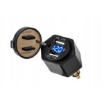 Motorcycle socket with DIN ISO 4165 connector compatible with BMW and Triumph motorcycles. Universal USB outputs make the socket is compatible with virtually any device available on the market, eg. navigation, mobile phones and others.
