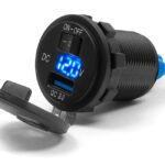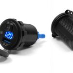 Motorcycle USB socket mounted in the motorcycle windshield.