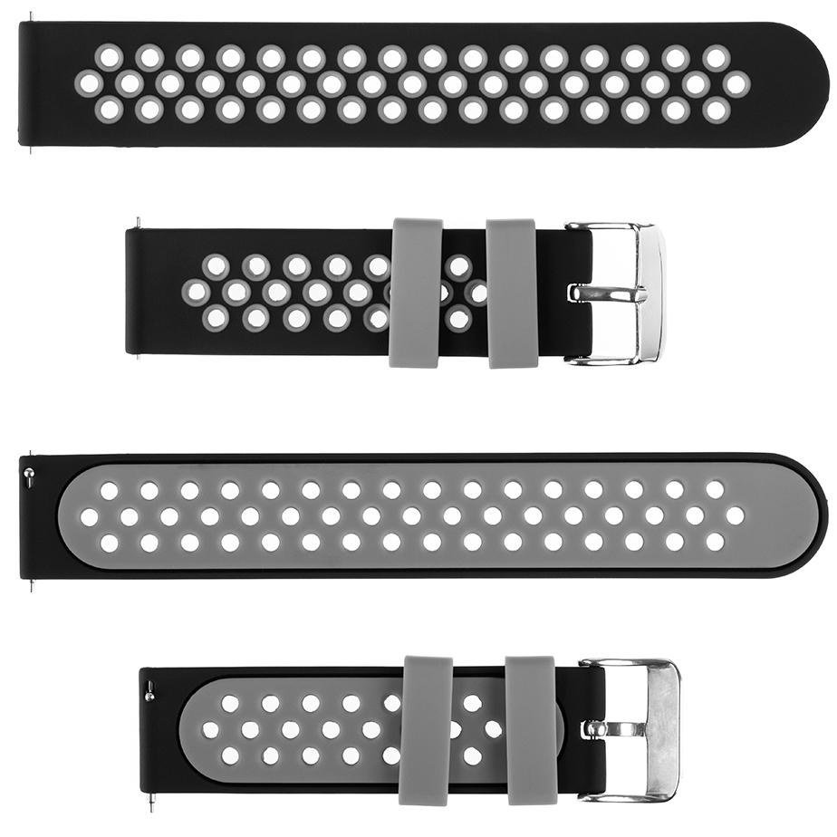 Pasek silikonowy S06 – czarno-szary – 22 mm