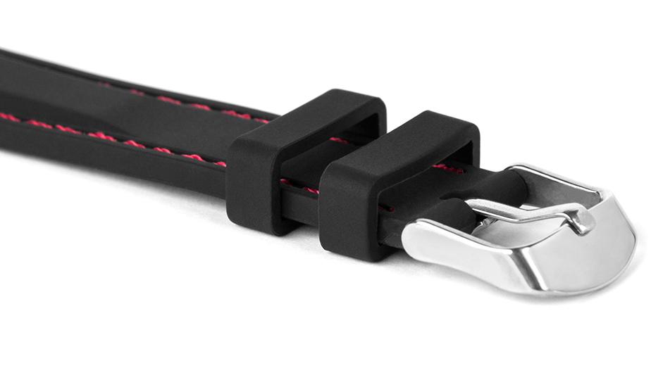 Pasek silikonowy Z02 – czarny – ciemnoczerwona nić – 22 mm