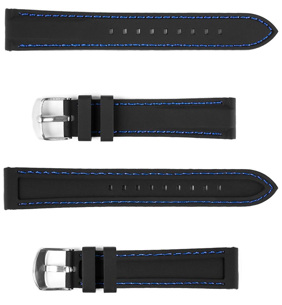 Pasek silikonowy Z02 - czarny - ciemnoniebieska nić - 22 mm quantity