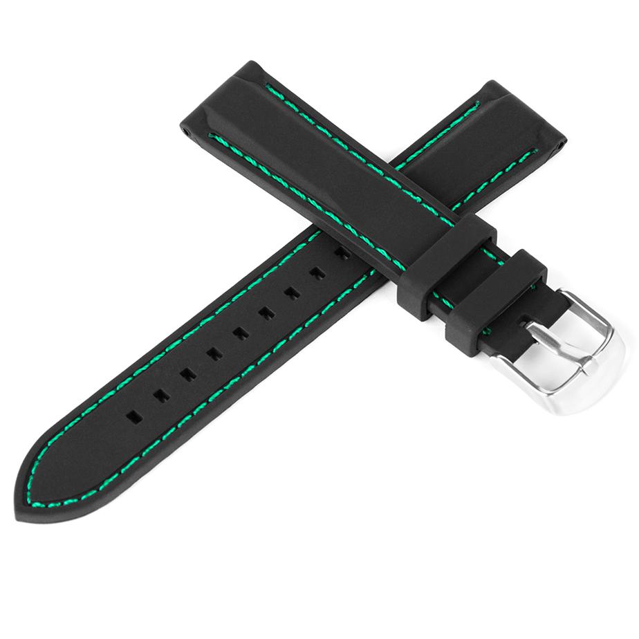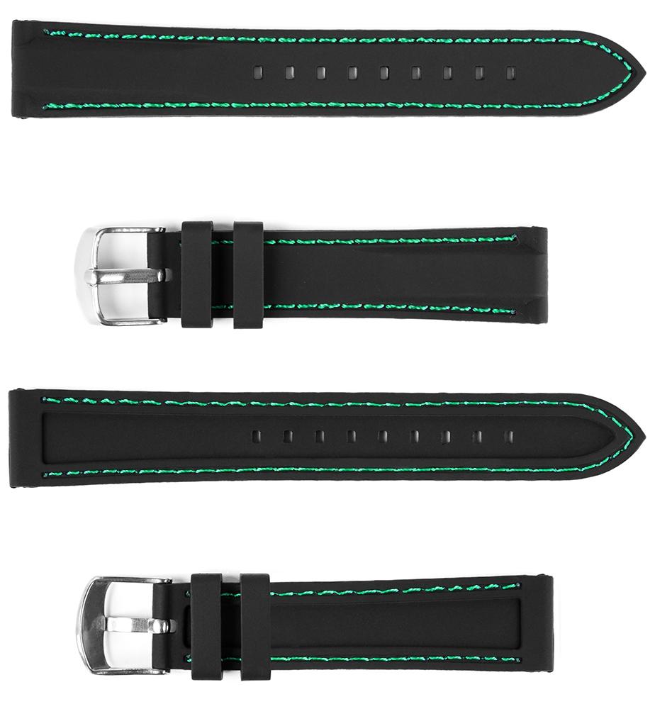 Pasek silikonowy Z02 – czarny – zielona nić – 24 mm