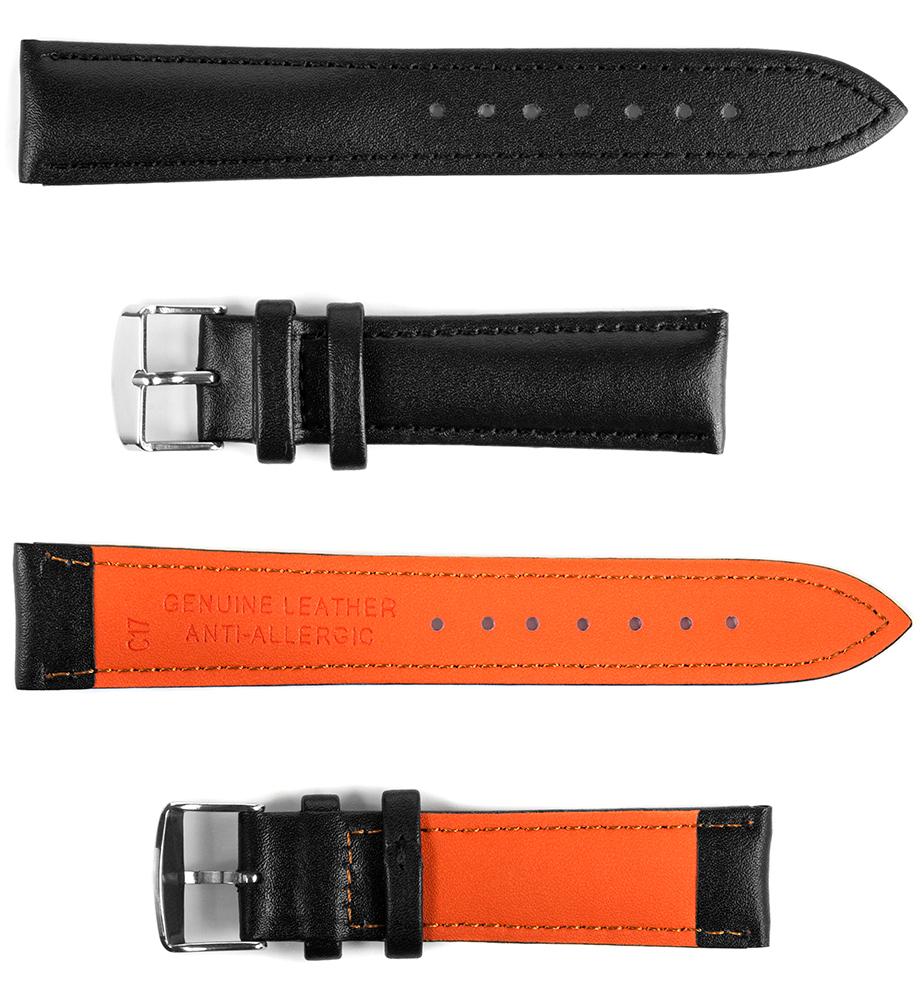 Pasek skórzany C17 – czarno-pomarańczowy – 20 mm