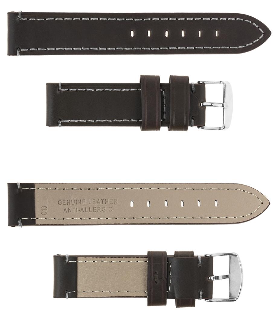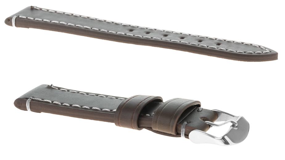 Pasek skórzany C18 – ciemnobrązowy – biała nić – 22 mm