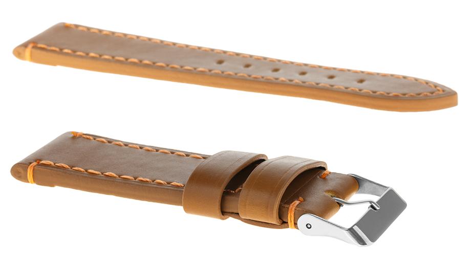 Pasek skórzany C18 – jasnobrązowy – brązowa nić – 24 mm