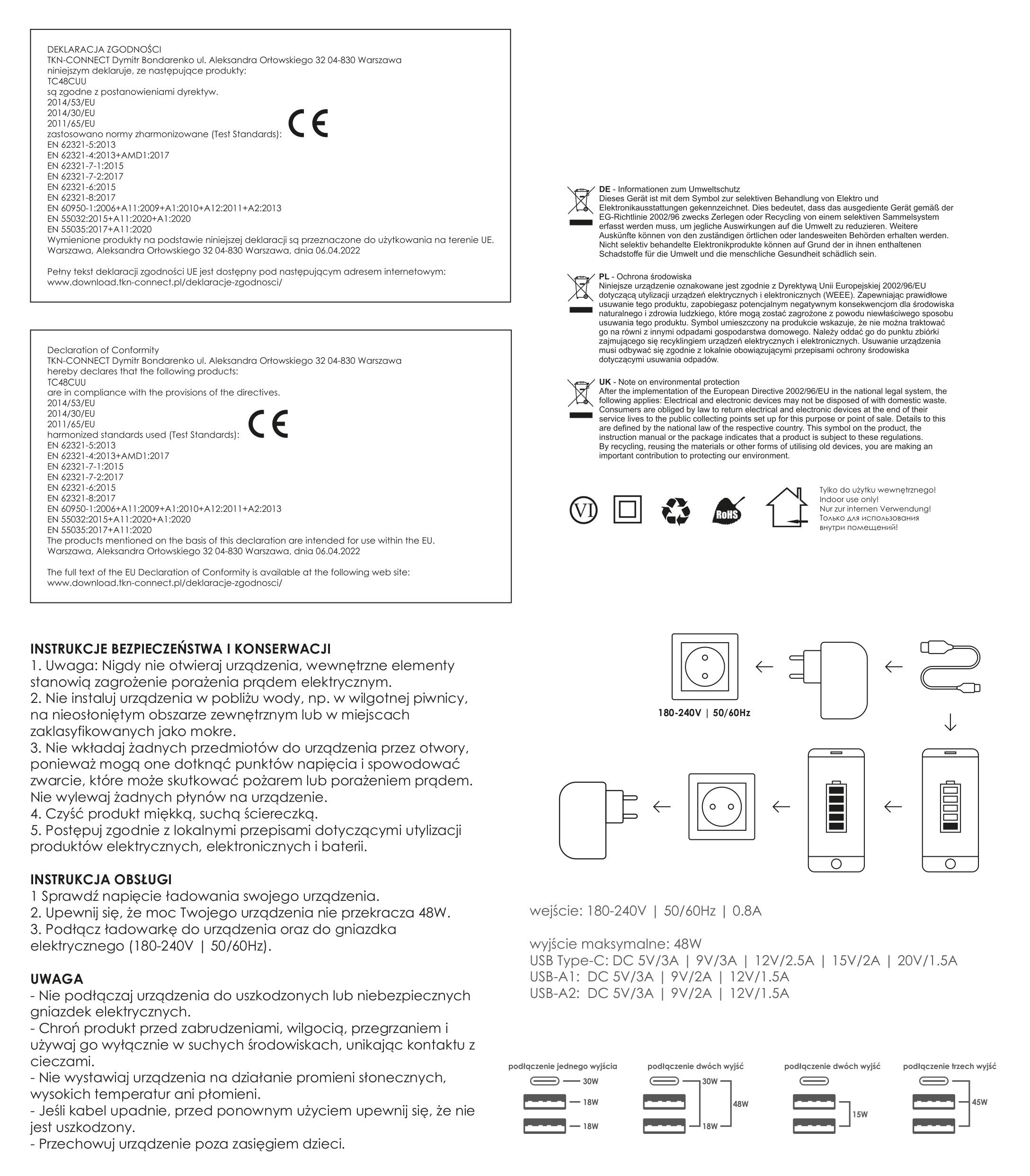 Travel charger USB Typ-C + 2 x USB – PD – 48W – TC48CUU