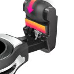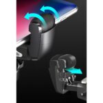 The holder has a mounting system based on rollers and spring hinges, thanks to which it holds the phone securely.