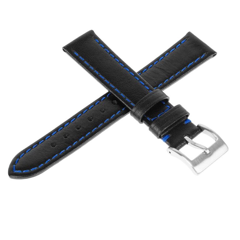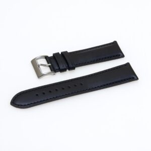 Pasek skórzany Premium A02-22 – czarny – granatowa nić – 22 mm