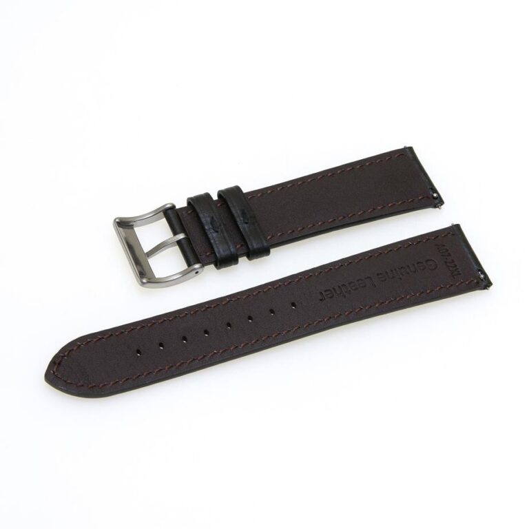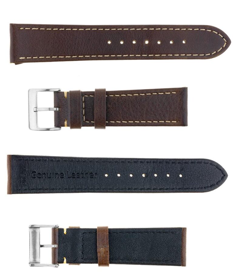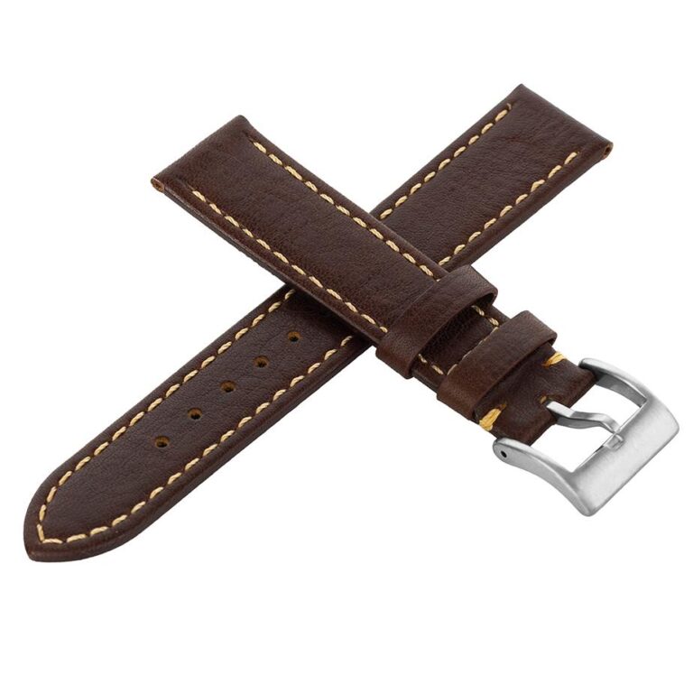 Pasek skórzany Premium A06-22 – ciemny brąz – beżowa nić – 22 mm