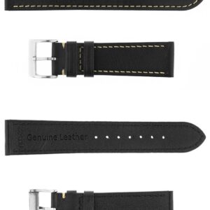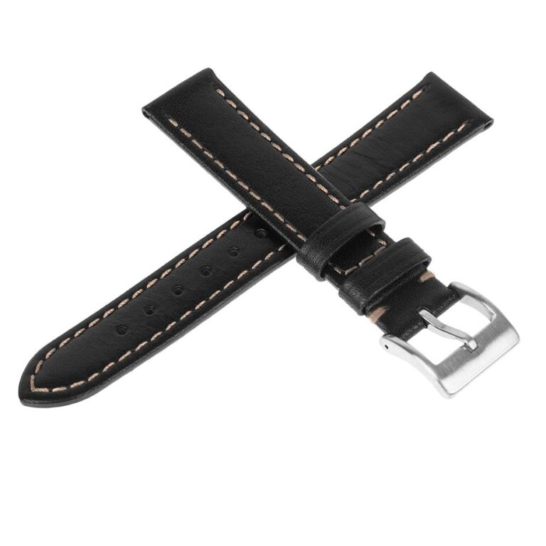 Pasek skórzany Premium A01-22 – czarny – beżowa nić – 22 mm