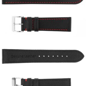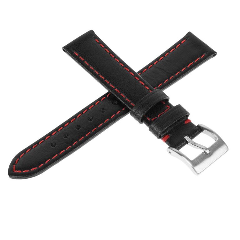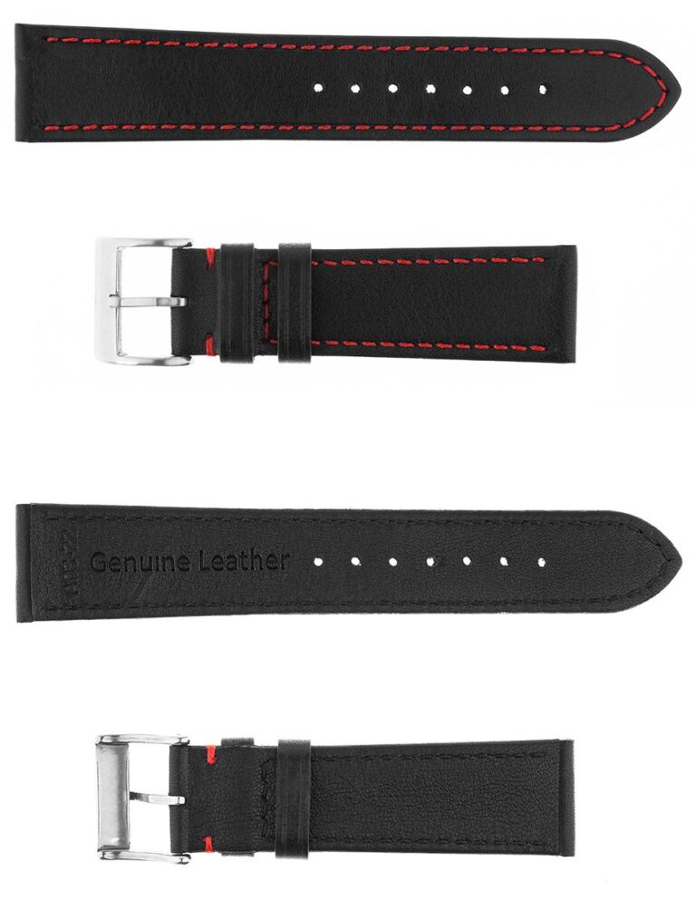 Pasek skórzany Premium A03-22 – czarny – czerwona nić – 22 mm