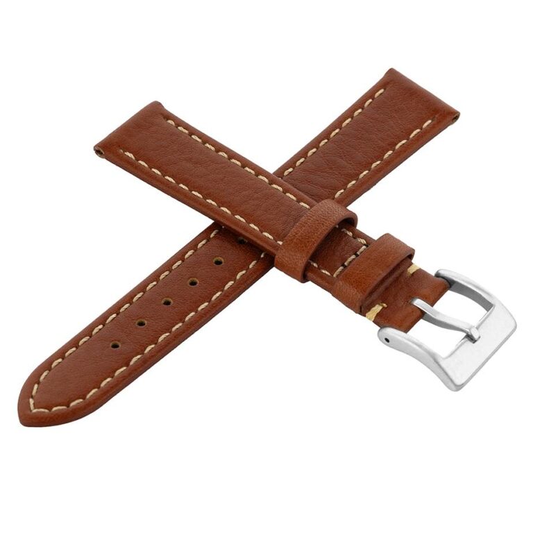 Pasek skórzany Premium A05-20 – jasny brąz – beżowa nić – 20 mm