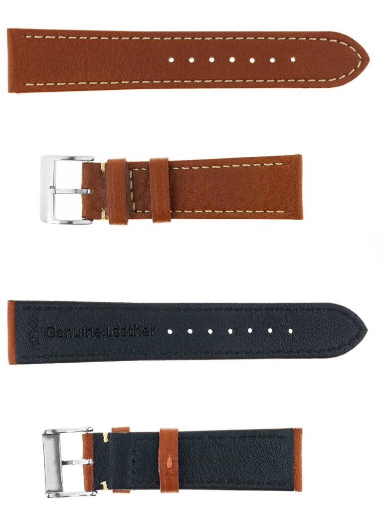 Pasek skórzany Premium A05-22 – jasny brąz – beżowa nić – 22 mm
