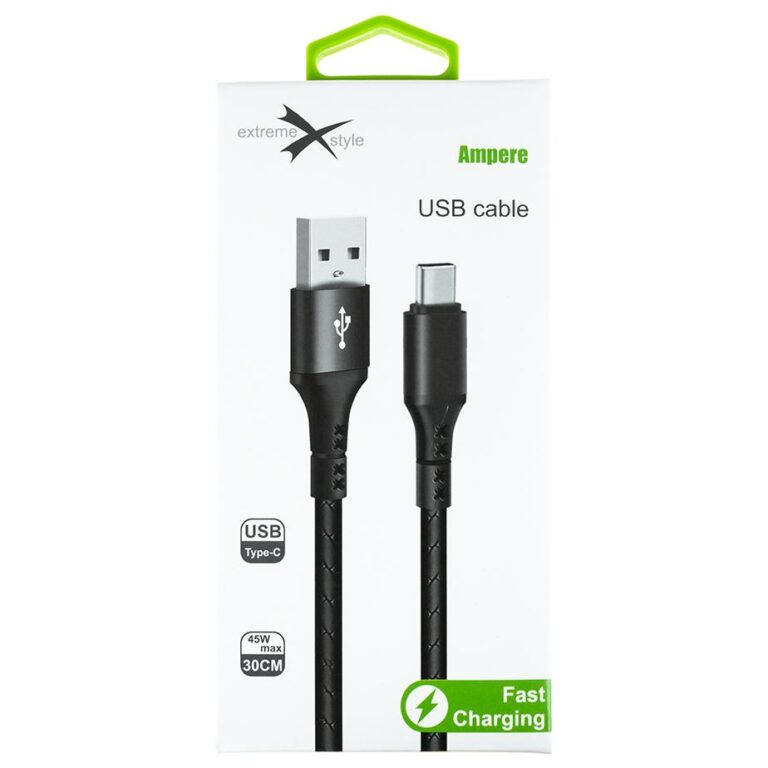 Wzmocniony kabel Ampere USB – USB typ-C – eXtremestyle® – 0.3 m – czarny