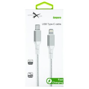 Wzmocniony kabel Ampere USB typ-C – iPhone Lightning – eXtremestyle® – 0.3 m – biały