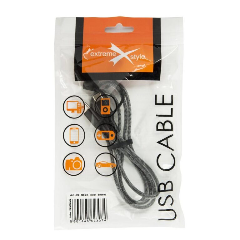 Kabel pleciony 4w1 – PD – eXtreme® – 100 cm – czarny