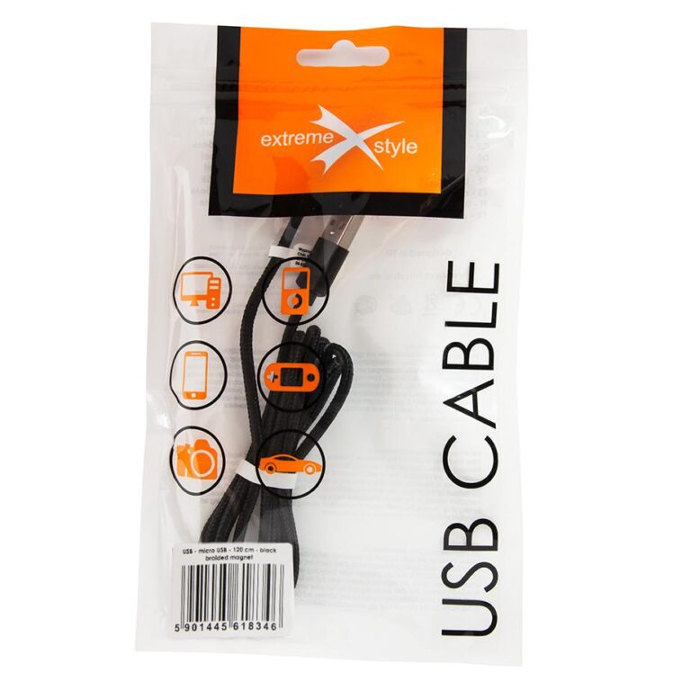 Kabel pleciony magnetyczny micro USB – eXtreme® – 120 cm – czarny