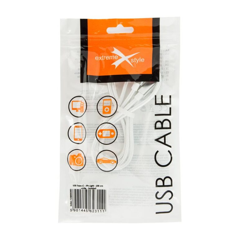 Kabel pleciony USB Typ-C – USB Typ-C – eXtreme® – 200 cm – biały