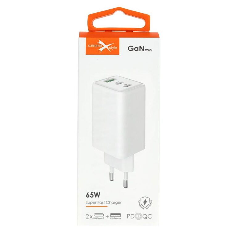 Ładowarka sieciowa 2 x USB Typ-C + USB – eXtremestyle® – GaN evo – 65 W – TC65CCUGAN