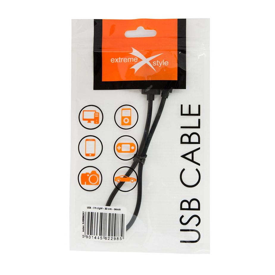 Kabel do telefonu ze złączem Apple Lightning – 30 cm – czarny