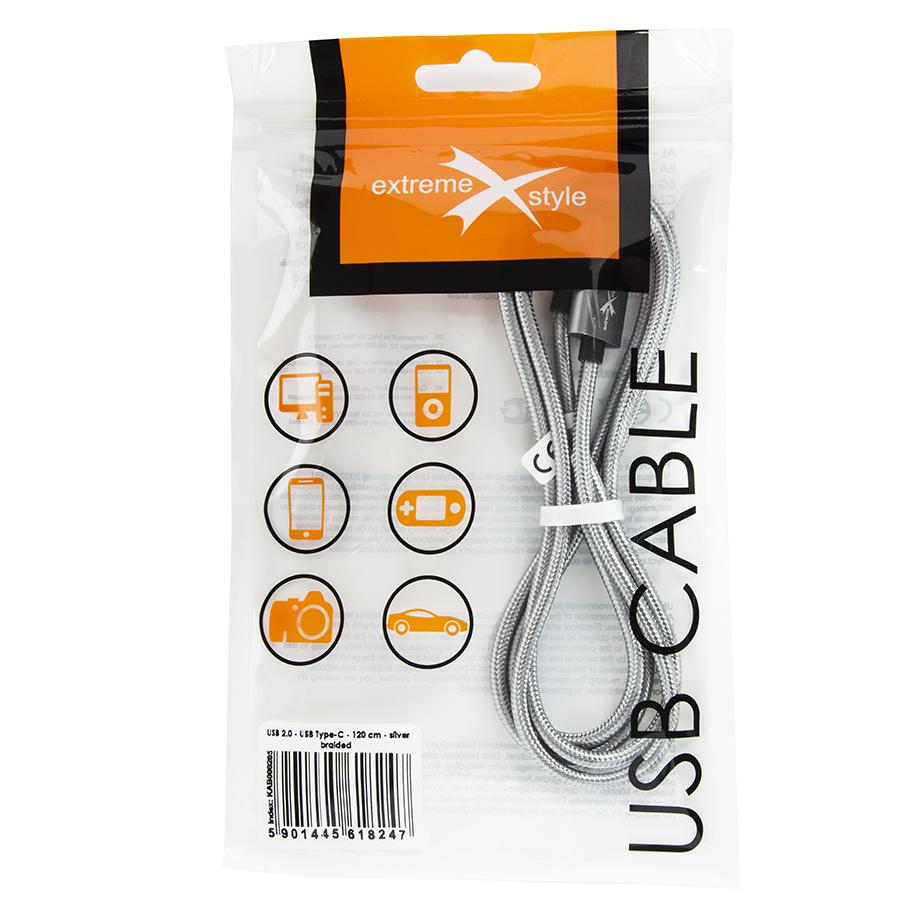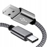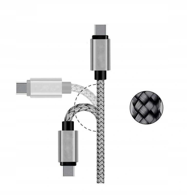 Kabel pleciony ze złączem USB typ-C – 120 cm – srebrny