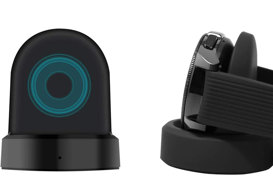 Wysokiej jakości ładowarka bezprzewodowa do smartwatchy marki Samsung, umożliwiająca ładowanie smartwatchy przy pomocy ładowarki sieciowej i samochodowej, powerbanka lub laptopa.