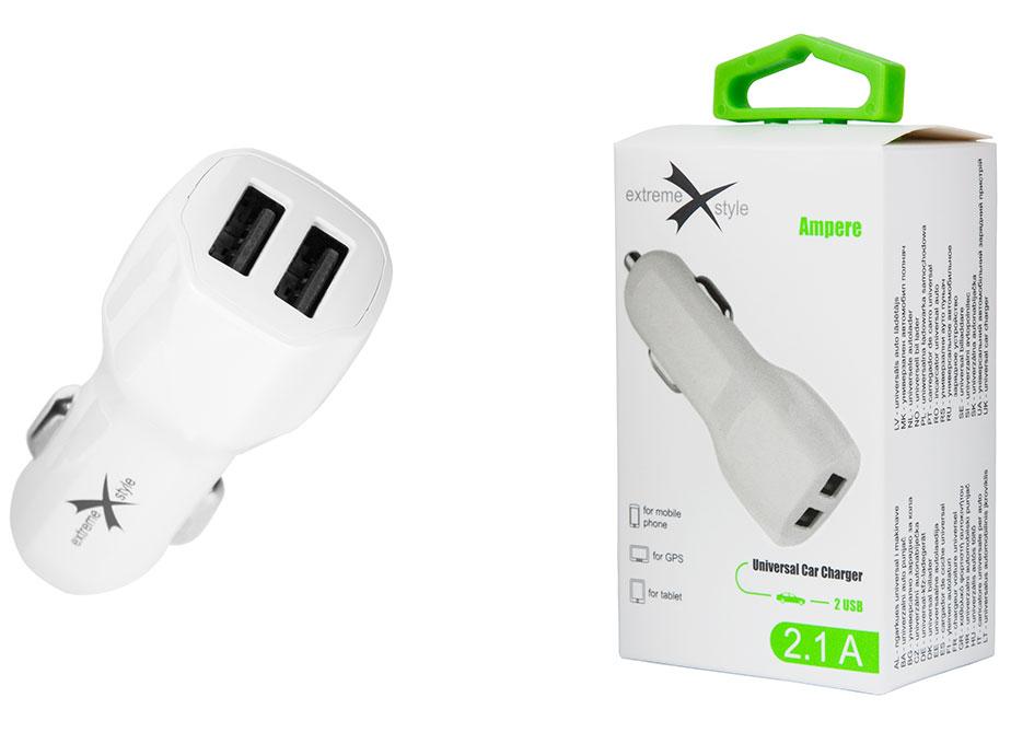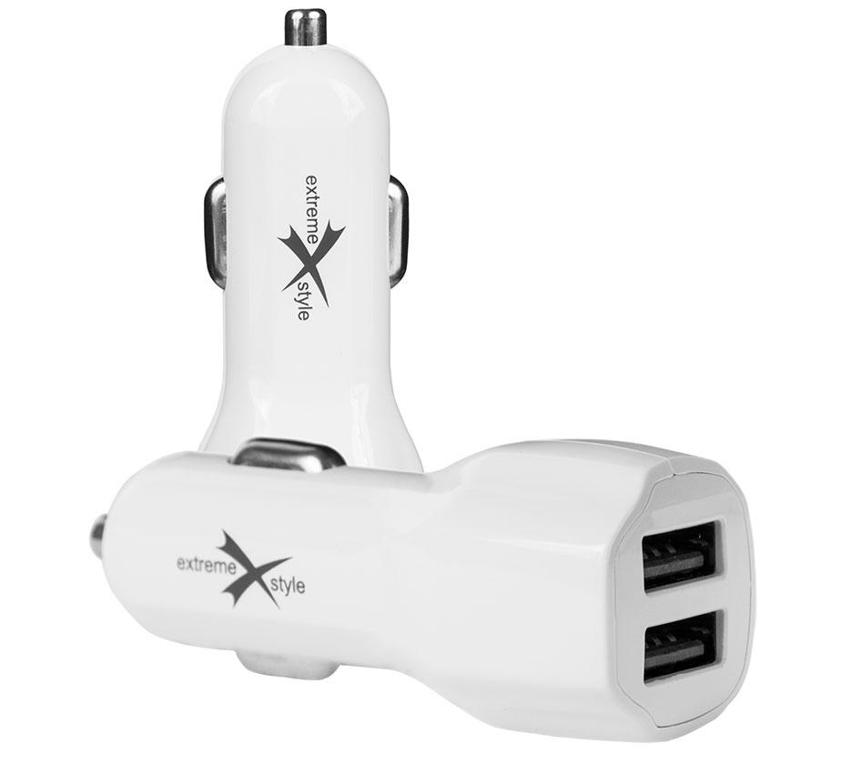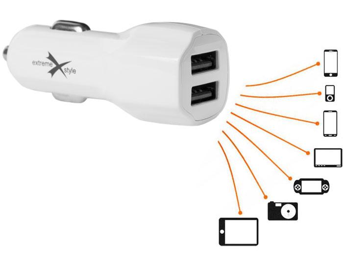 Podwójne gniazdo USB w ładowarce jest stabilnym źródłem prądu 5 V dla dwóch urządzeń. Niezależnie od tego czy korzystasz w czasie jazdy samochodem z telefonu, nawigacji GPS, kamery czy innego urządzenia, ładowarka marki eXtremestyle® to rozwiązanie problemu zasilania ich.