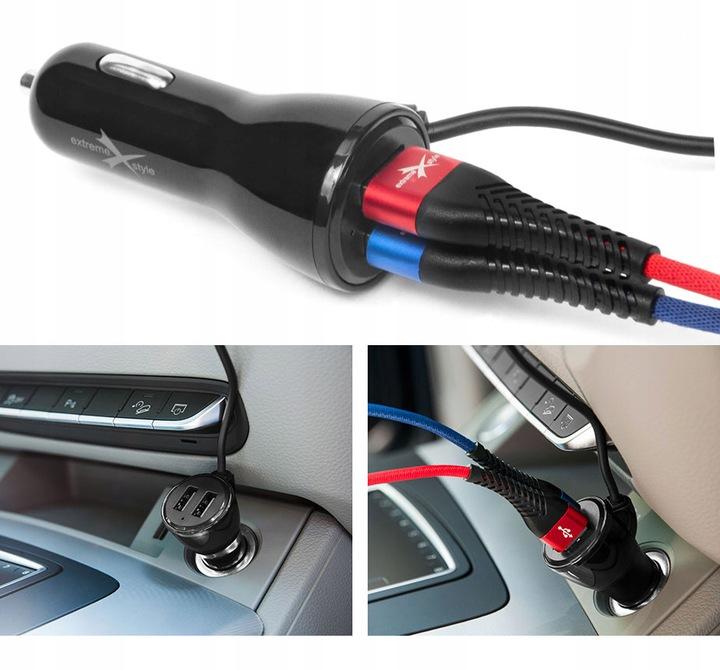 Ładowarka samochodowa do telefonu micro USB + 2 x USB – eXtremestyle® Ampere – 4A – ACCM2U4B