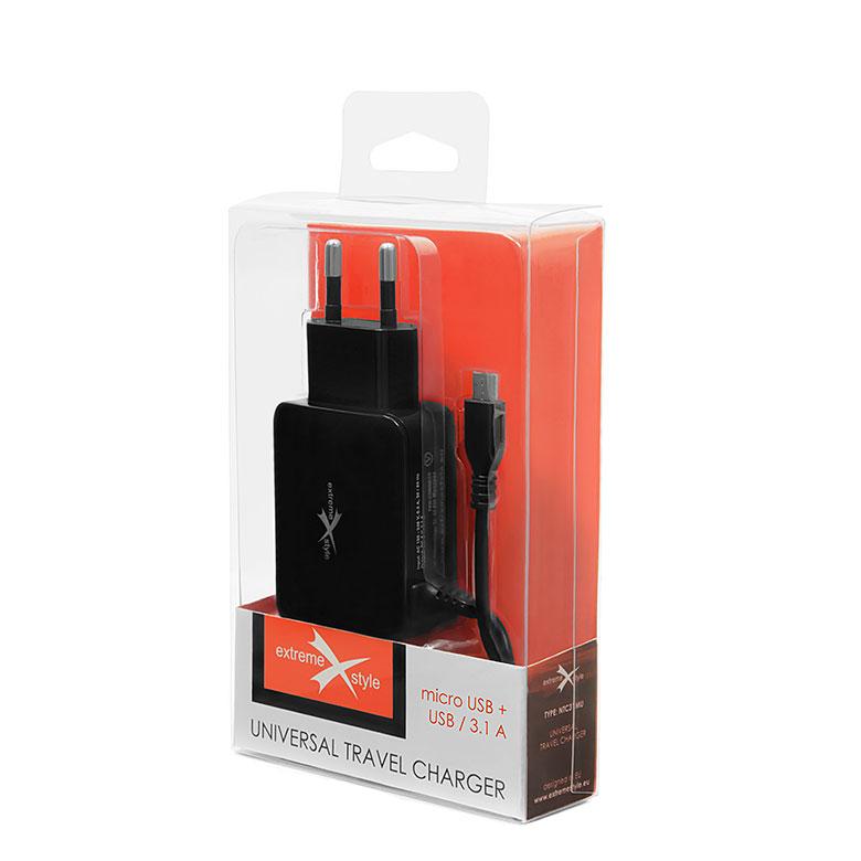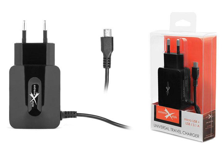 Ładowarka sieciowa ze złączem micro USB oraz z gniazdem USB to niezwykle wygodne rozwiązanie zarówno w domu jak i w podróży. Ładowarka sieciowa marki eXtremestyle® ładuję telefony z max. natężeniem 3.1 A. Podobnie jak wiele innych ładowarek marki eXtremestyle®, NTC31MU została wyposażona w system Smart IC, dzięki czemu potrafi dostosować pobór mocy do wymagań podłączonego urządzenia, co zabezpiecza przed przeładowaniem, zwarciem i przepięciami, jednocześnie zapewnia szybki proces ładowania.