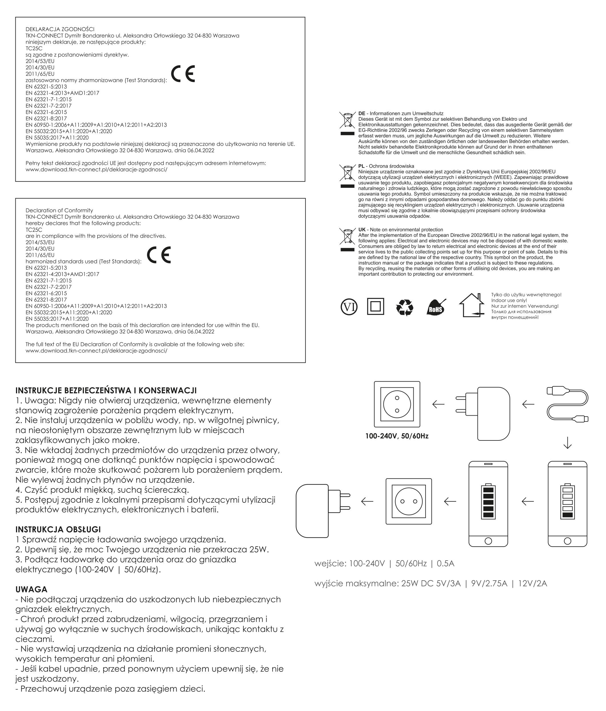 Deklaracja zgodności i instrukcja bezpieczeństwa