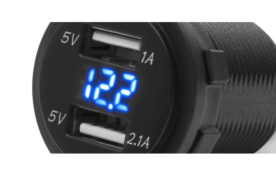 Motocyklowe gniazdo z wyświetlaczem – 2 x USB – 3.1 A – MUS10