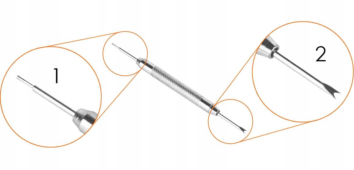 1. Końcówka w kształcie igły służy do skracania bransolet poprzez wypychanie trzpieni łączących ogniwa.