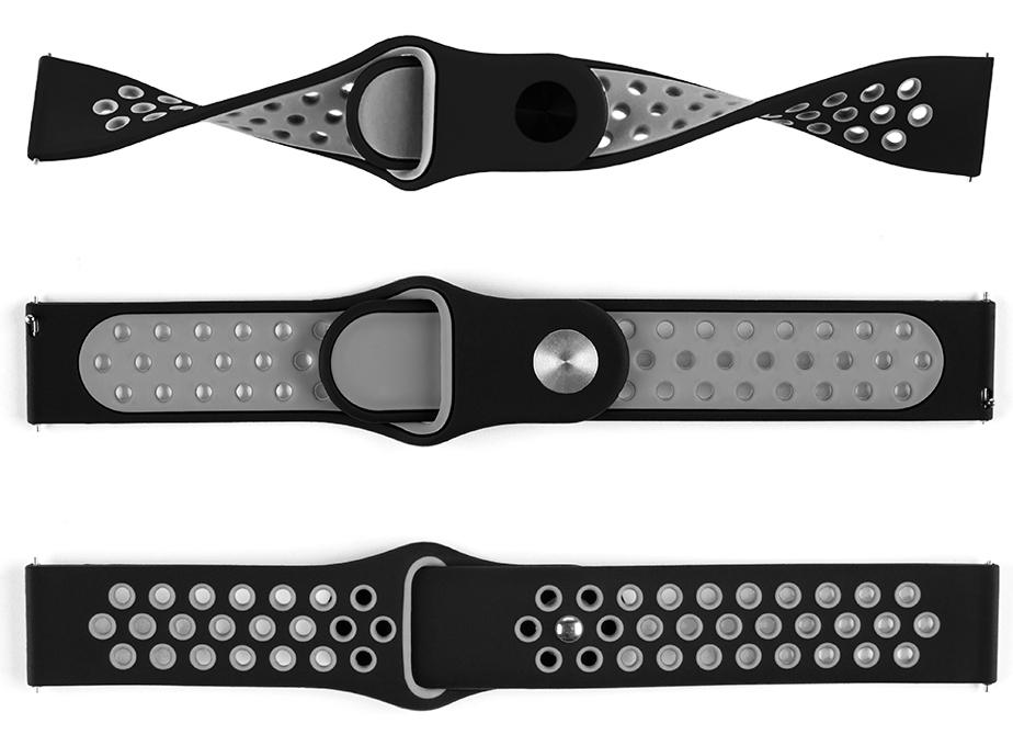 Pasek silikonowy S02 – czarno-szary – 22 mm