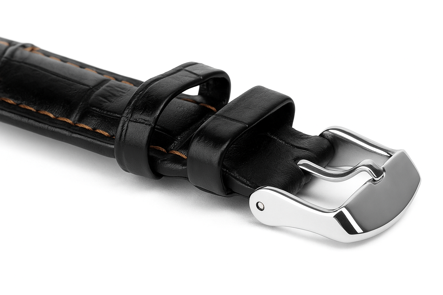 Wysokiej jakości, hipoalergiczny pasek o fakturze krokodyla, świetnie pasuje do różnych stylów.