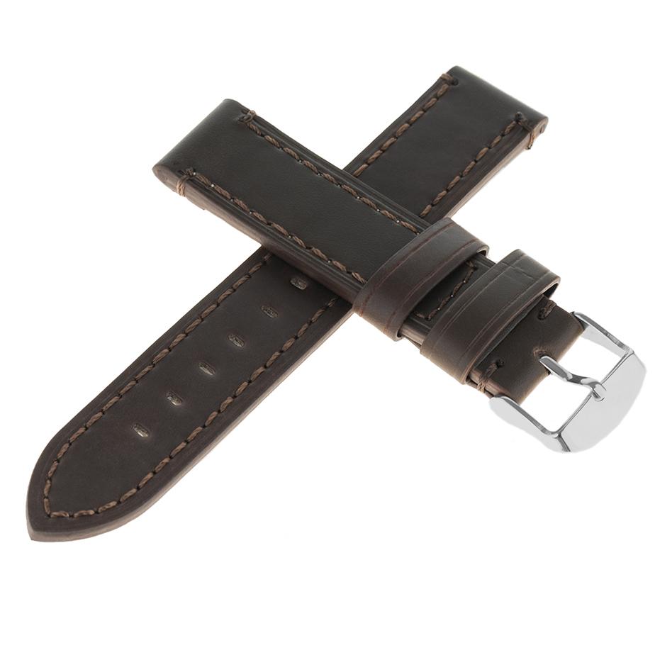 Pasek skórzany C18 – ciemnobrązowy – brązowa nić – 20 mm