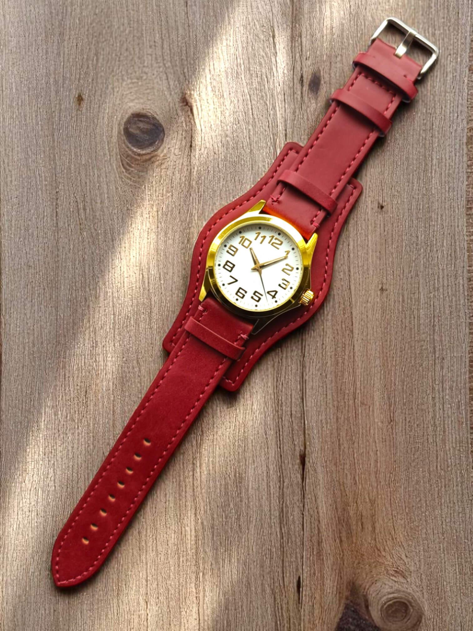 Wyjątkowy pasek do zegarka z szeroką podkładką, który łączy klasyczny styl z wygodą noszenia. Dzięki dodatkowej warstwie skóry pod kopertą, pasek równomiernie rozkłada nacisk na nadgarstku, zapewniając większy komfort, zwłaszcza przy cięższych zegarkach. Solidne przeszycia i wysokiej jakości materiały gwarantują trwałość oraz elegancki wygląd przez długi czas. Idealny wybór dla miłośników stylu retro i wojskowego.