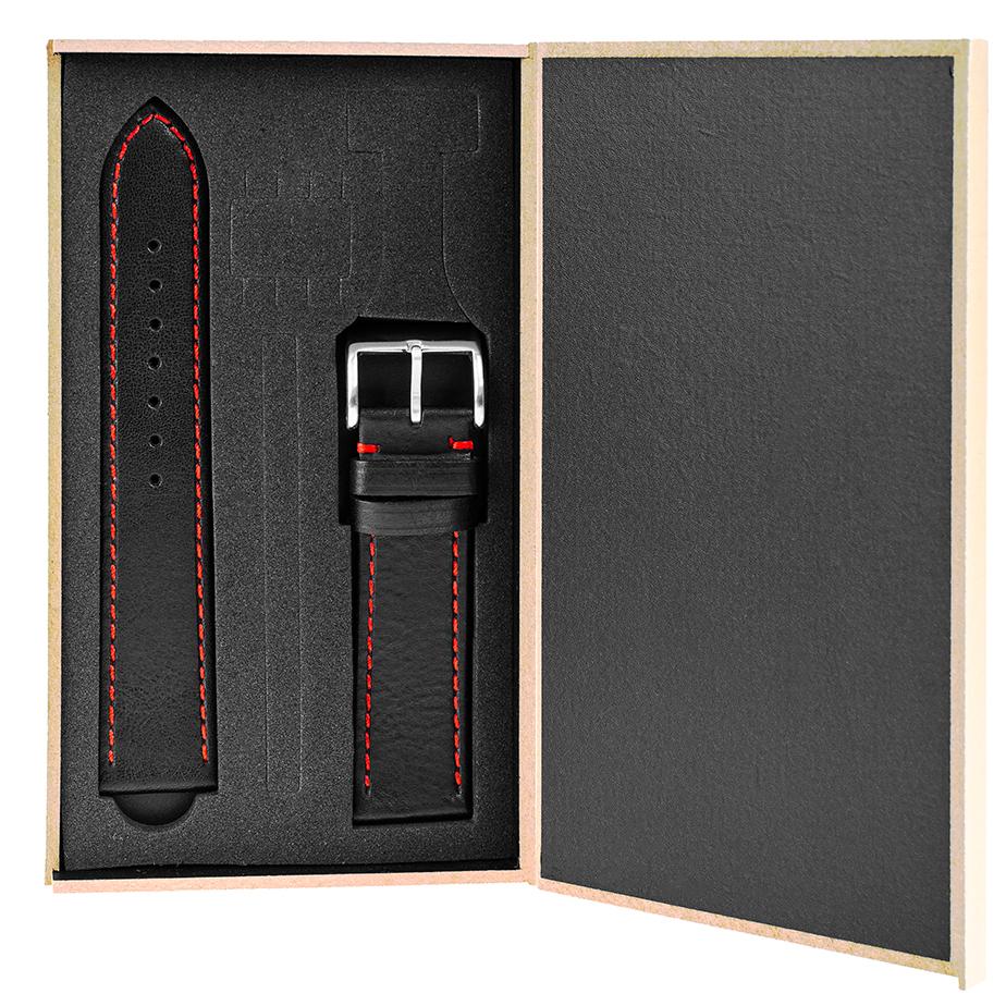 Pasek skórzany Premium A03-22 – czarny – czerwona nić – 22 mm