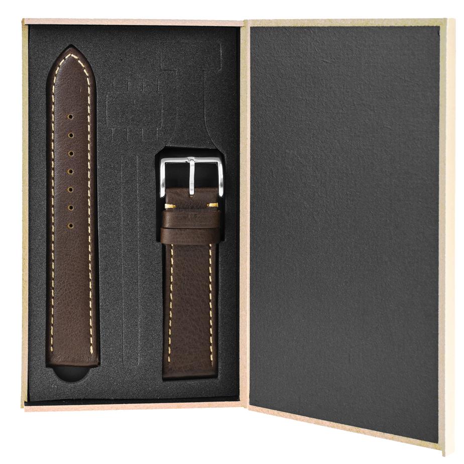 Pasek skórzany Premium A06-18 – ciemny brąz – beżowa nić – 18 mm