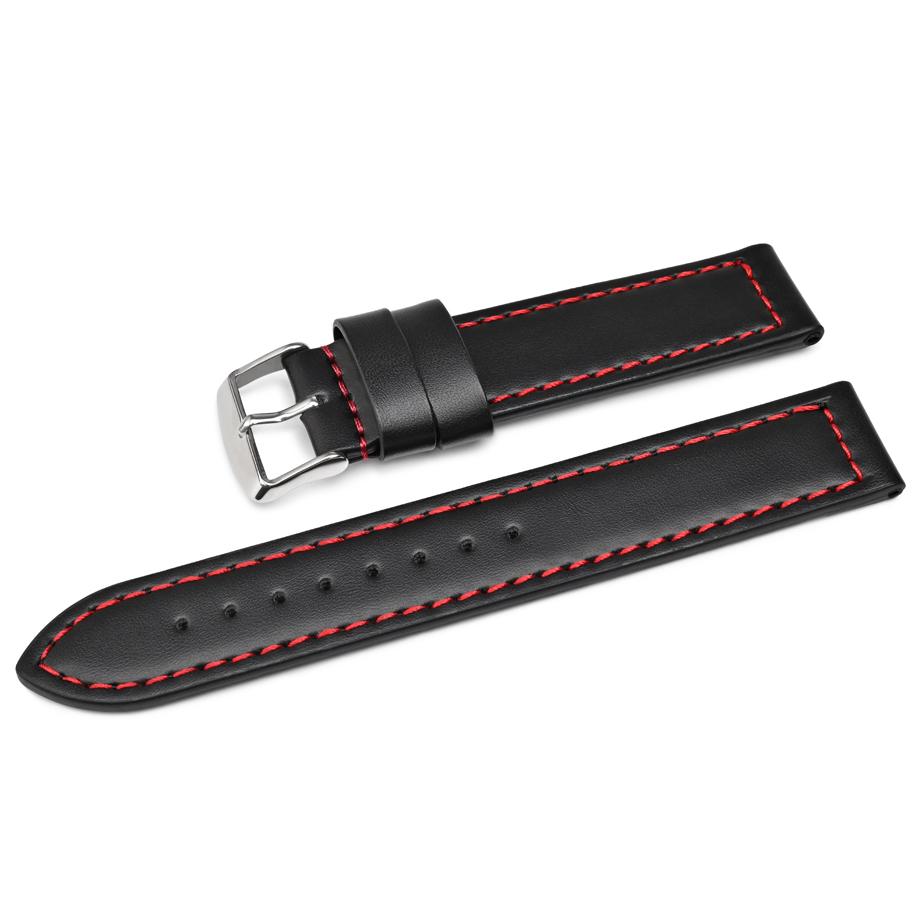 Pasek skórzany SuperFiber C22XL – czarny – czerwona nić – 18 mm