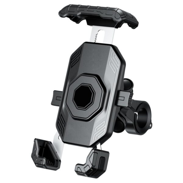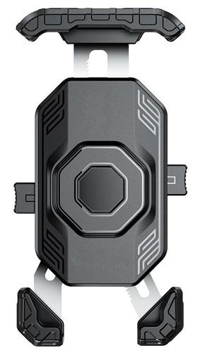 Uchwyt został wykonany z wytrzymałego oraz odpornego tworzywa, co gwarantuje jego solidność i długą żywotność. Stabilna obejma pasuje do większości kierownic, zapewniając pewny montaż. Budowa uchwytu skutecznie zapobiega przesuwaniu się telefonu, nawet podczas jazdy po nierównościach.