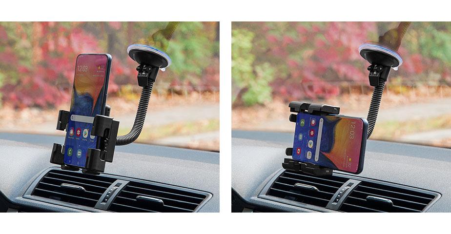 Ramię uchwytu można wyginać i nadawać mu prawie dowolny kształt, a tym samym dostosować pozycję telefonu do własnych potrzeb.