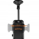 Kulowe połączenie głowicy z mocowaniem do szyby umożliwia ustawienie telefonu zarówno w poziomie, jak i w pionie.