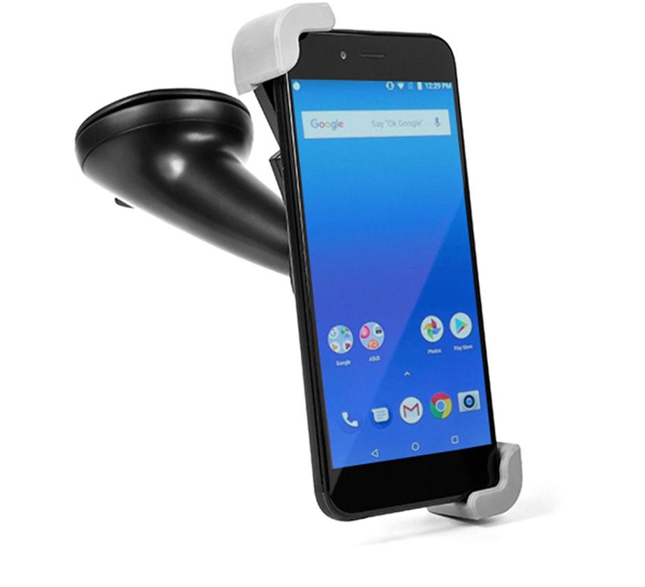 Kulowe połączenie głowicy z mocowaniem do szyby umożliwia ustawienie telefonu zarówno w poziomie jak i w pionie.