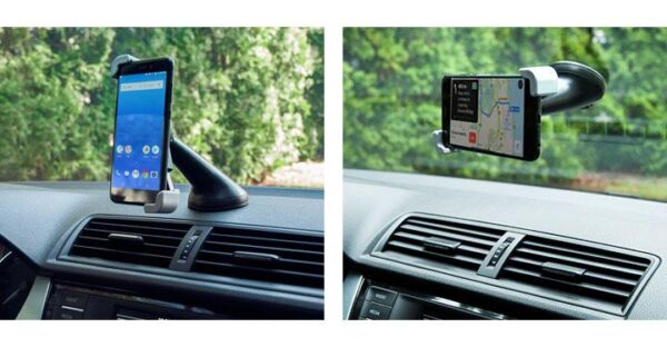 To samo połączenie pozwala na regulację pochylenia telefonu względem szyby czy deski w samochodzie.